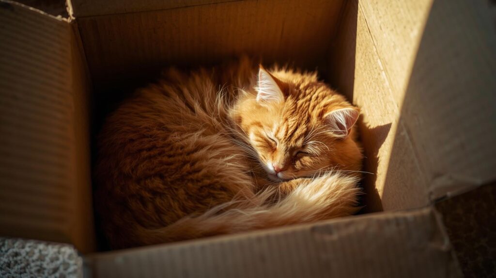 私が雑に置いた通販の空っぽの段ボールに、猫は喜んで入る。