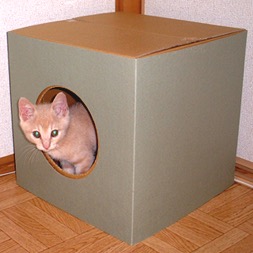 ボックスストアでも猫用の段ボールハウスを用意してる。